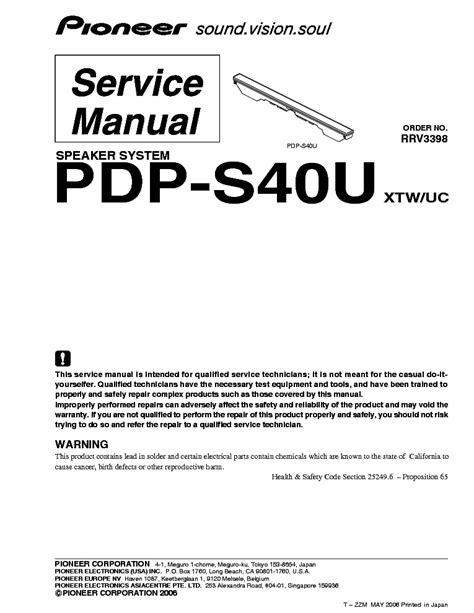 In order to read or download Pioneer Pdp S40u Xtw Repair Service Manual User Guides ebook, you need to create a FREE account.